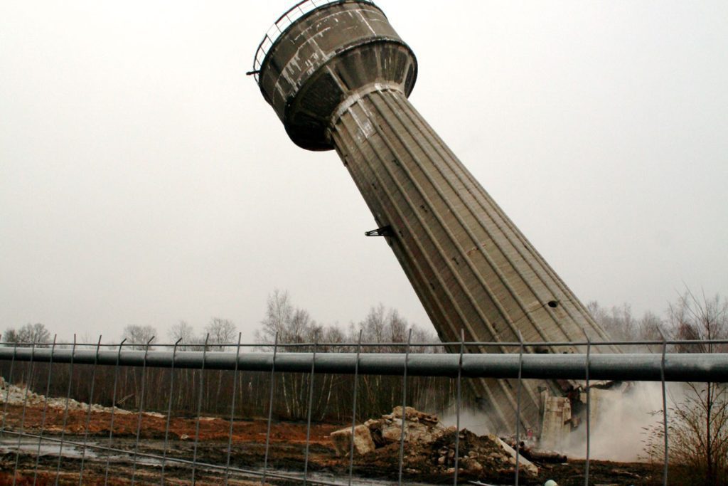 Photo d’archive du 12 décembre 2007 – le château d’eau de l’unité salbrisienne de production d’armement sera la dernière des constructions de l’emprise GIAT à tomber ! Il aura fallu vingt ans pour qu’une autre construction s’élève enfin…. ©delaage